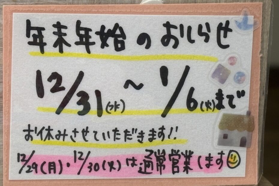 年末年始のお知らせ
